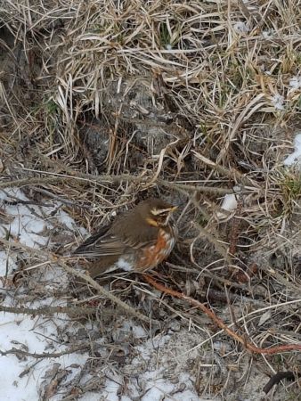 Fuglemæssigt en meget stille dag. Kulden er hård ved dem og i fyrhaven lå en død sjagger. Desuden enkelte vindrosler i haven og en ved gangstien. Og den klarer ikke skærene ser det ud til. Så noget afkræftet ud.
