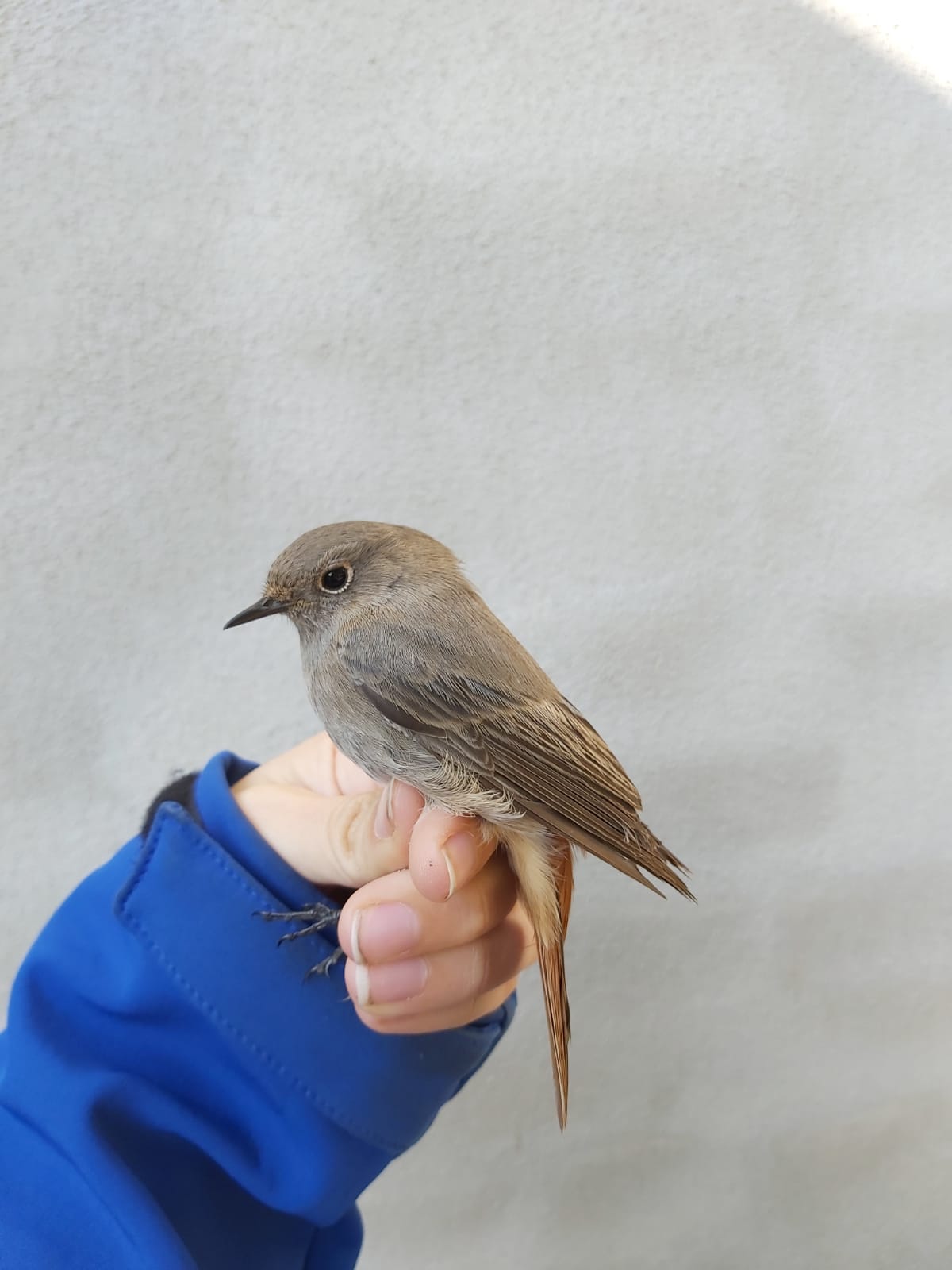 En ung husrødstjert blev fanget og ringmærket i dag. Foto: Lisa Flam