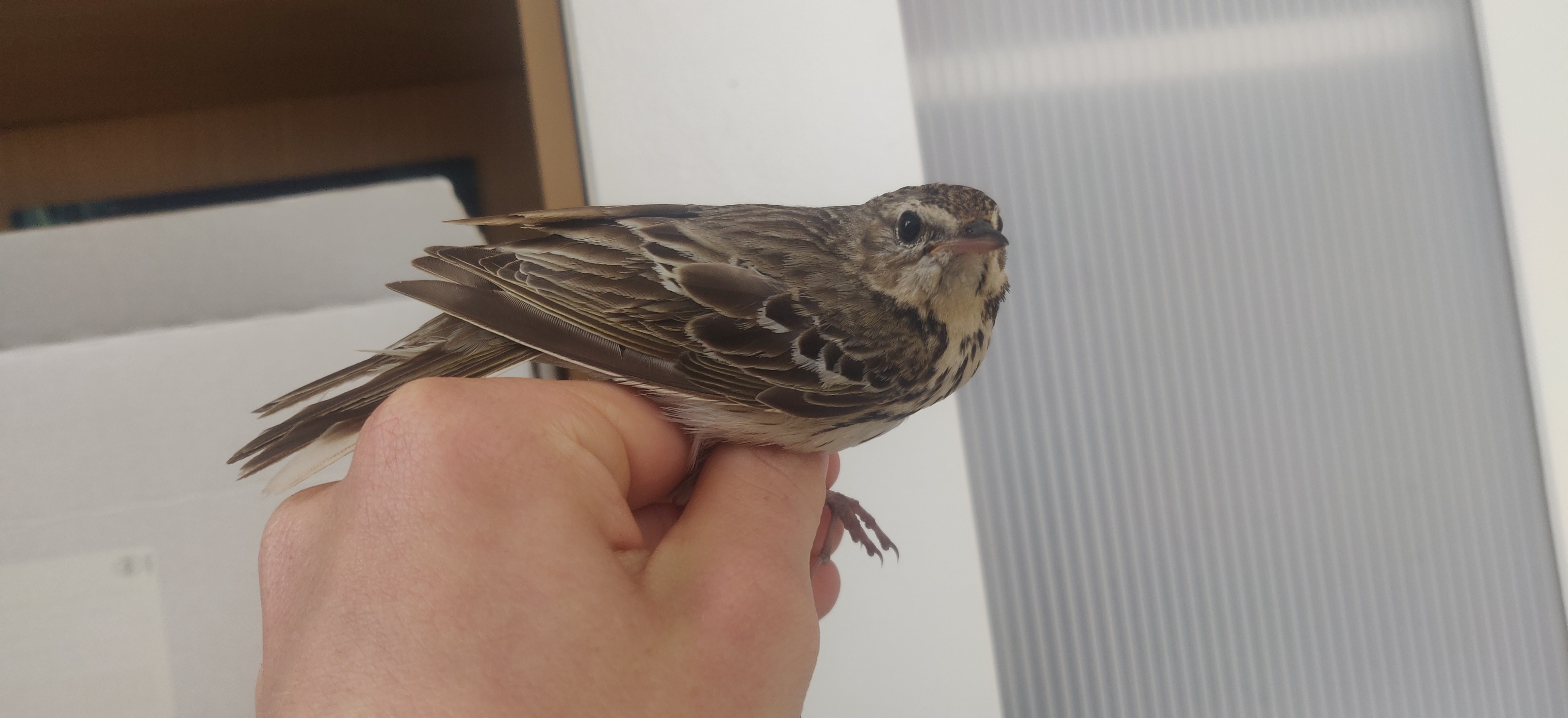 Today it was possible to open all the nets again for the whole day. After two days with only limited opened nets, it was really nice to open everything again. It started really nice with a juvenile robin. After many adult/2k birds, this was only the first time we caught a juvenile. Because robins are quite agrassive, the juveniles must have no red breast because the males would attack them otherwise. Besides the juvenile robin, two juvenile common whitethroats flew in the nets. The crested tit had a good breeding season in the nearby woods, because we catch plenty of them. Despite their cuteness, they can be quite annoying jhnwith their picking and talent of grabbing a lot of net firmly. Speaking about tits, I caught the second marsh tit in the history of the station. Next to that, we caught a tree pipit. This was the first for the season, normally they are caught earlier.