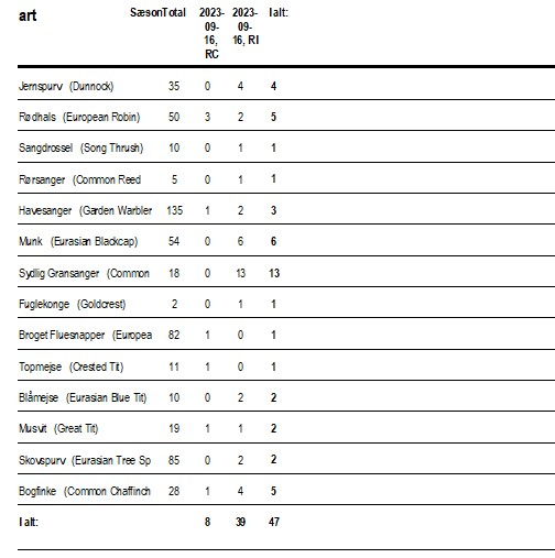 Så er vi kommet i den anden halvdel af september, og det plejer med fuglebrillerne på, aldrig rigtig at skuffe. Med godt humør åbnede vi dørene i morges, og blev mødt af et skyfrit og svage østlig vind. Det tydede meget godt under netåbningen, da der var lidt lyde i krattene af rødhalse, jernspurve, sangdrosler og gransangere. Det skulle vise sig, at der var kommet lidt pip i krattene til os, især gransanger var pænt til stede i dag, og lad da bare phyllerne begynde at tage overhånd! Det er altid en fornøjelse. Bent berettede om et Bryn på Helgoland i dag, så nu er der endnu en gang efterårs-hul mellem os og Sibirien.