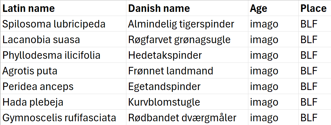 Not many moths today but I had one new for the season, Spilosoma lubricipeda “Almindelig tigerspinder”.